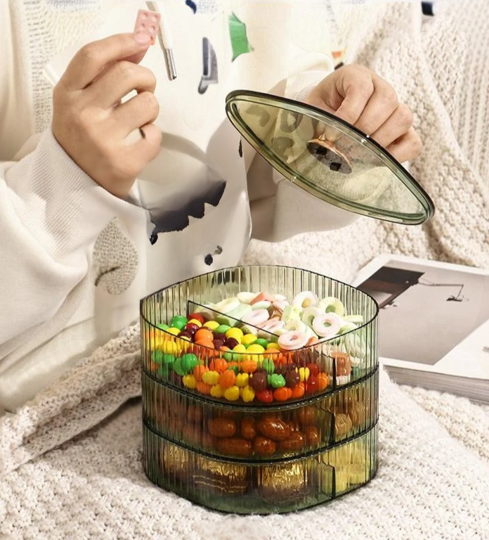 ● マルチレイヤー構造により、ドライフルーツやキャンディなどを種類別に美しく収納でき、使い勝手抜群です。